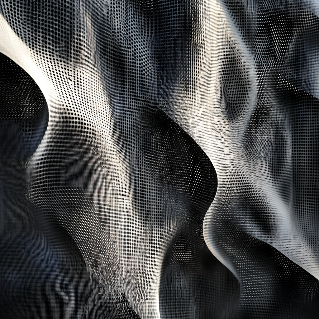 Hygroscopic layers, responsive to ambient humidity, inhale and exhale moisture like skin in microclimatic rhythm. At the microscale, bio-mimetic lattices modelled on bone, coral, and leaf venation amplify strength-to-weight ratios while directing airflow with structural efficiency.